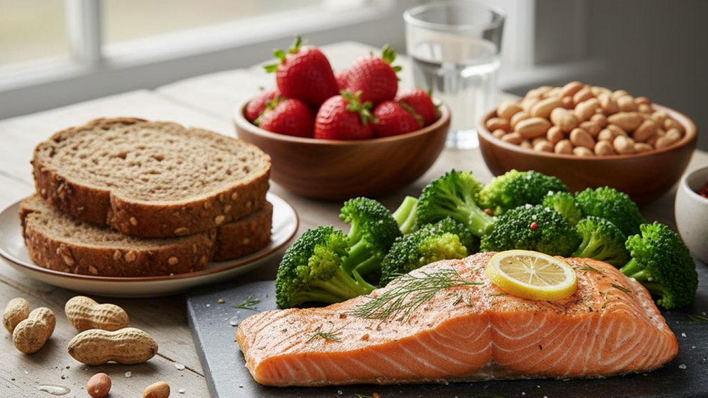 شام: ماهی کبابی، سبزیجات بخارپز شده و نان سبوس‌دار